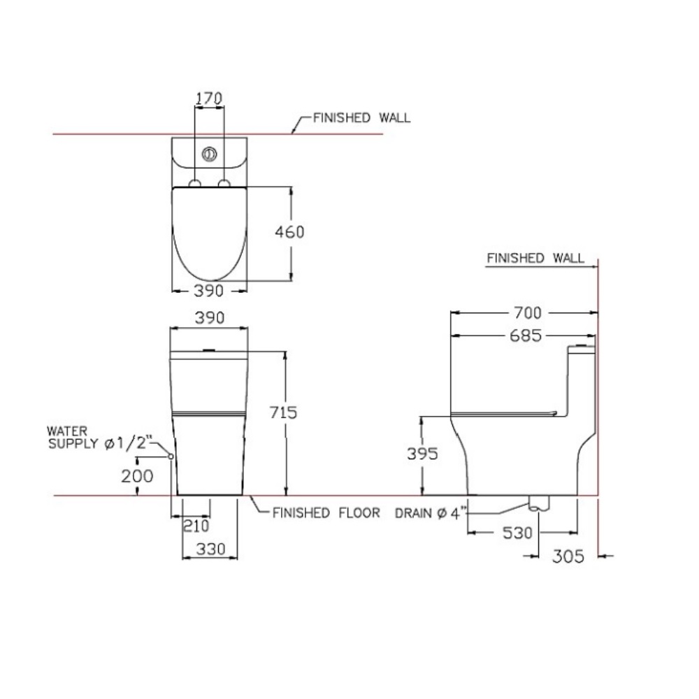 - Thiết kế: Thân dài, S Trap (305mm)