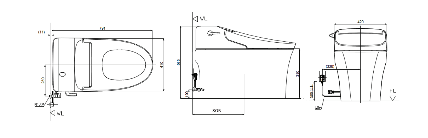 Bản vẽ bồn cầu điện tử American Standard WP-5017