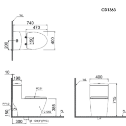 3.Bản vẽ bàn cầu 1 khối ToTo CW823NW/F nắp TC393VS