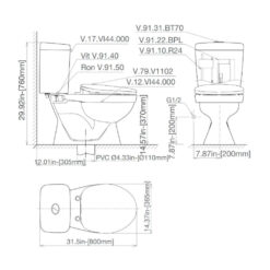 - Hệ thống xả: Siphon, 2 nút nhấn