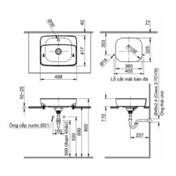 - Tâm xả: 305mm
