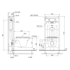 Bản vẽ Bồn Cầu Treo Tường TOTO CW822RA/TC600VS
