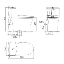 - Chất liệu sứ cao cấp, chống bám bẩn