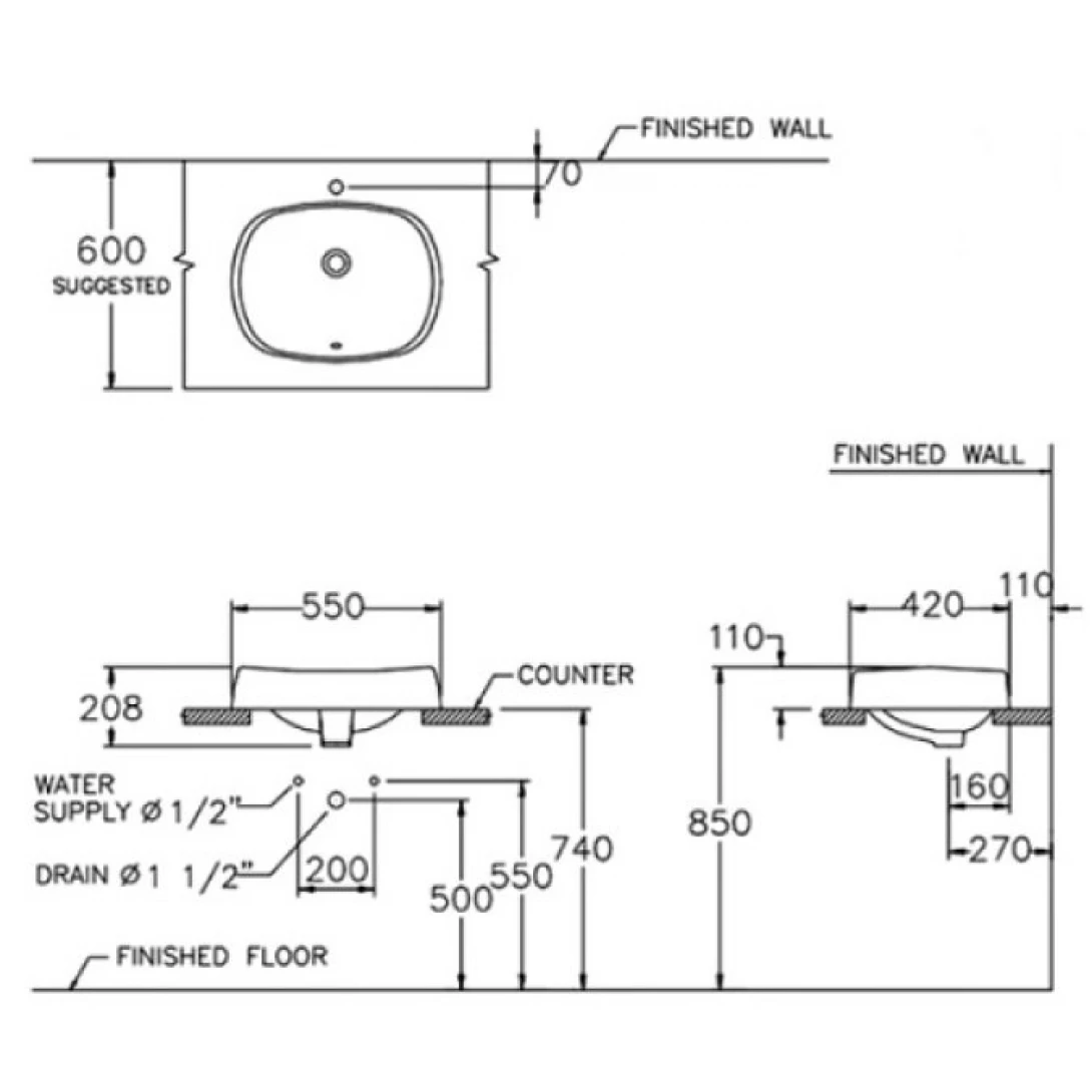 - Kích thước (R x D x C): 550 x 420 x 208 mm