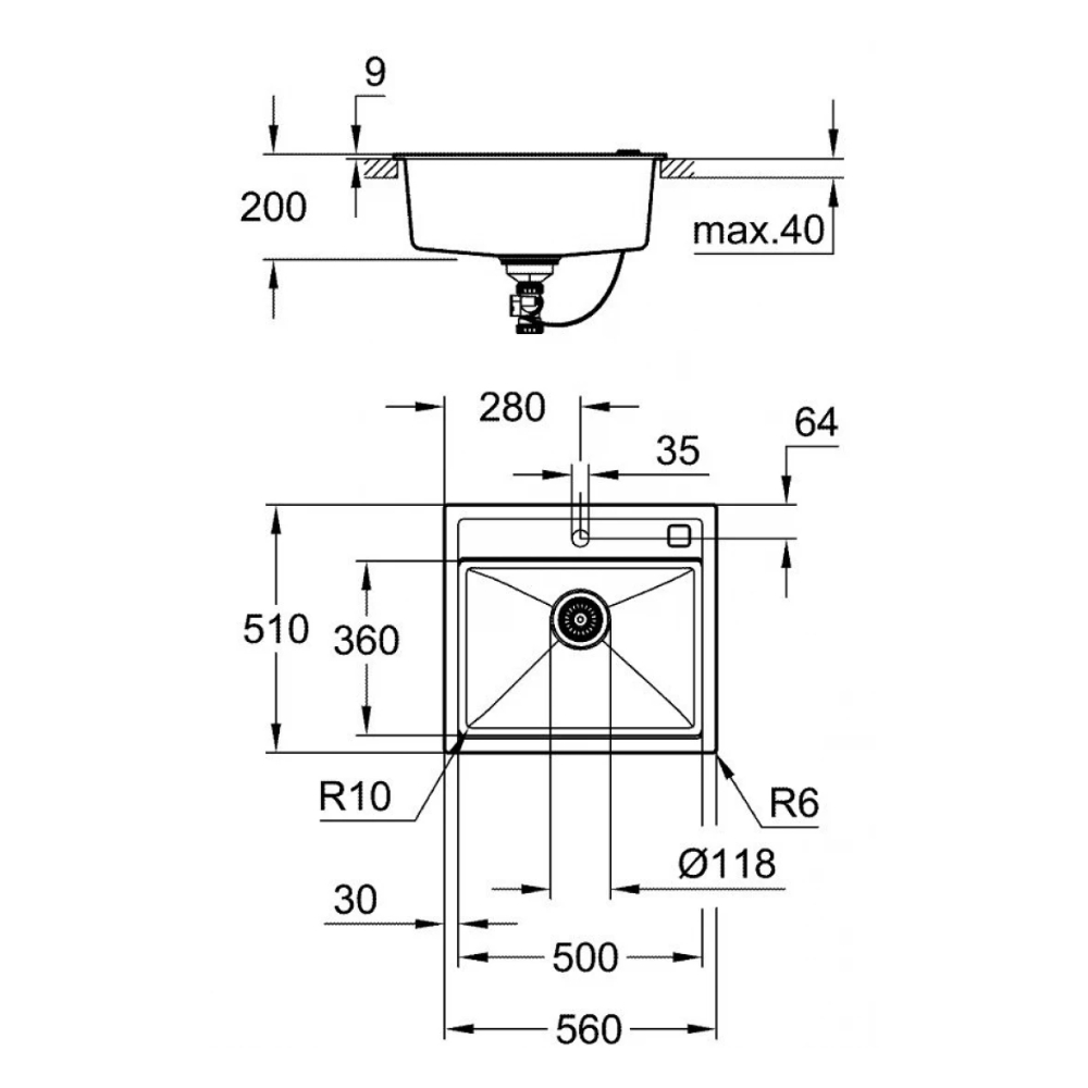 Bản Vẽ Chậu Rửa Chén 1 Hộc GROHE 31651AP0