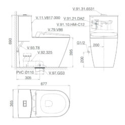 BỒN CẦU 1 KHỐI KÈM VÒI XỊT VIGLACERA V64