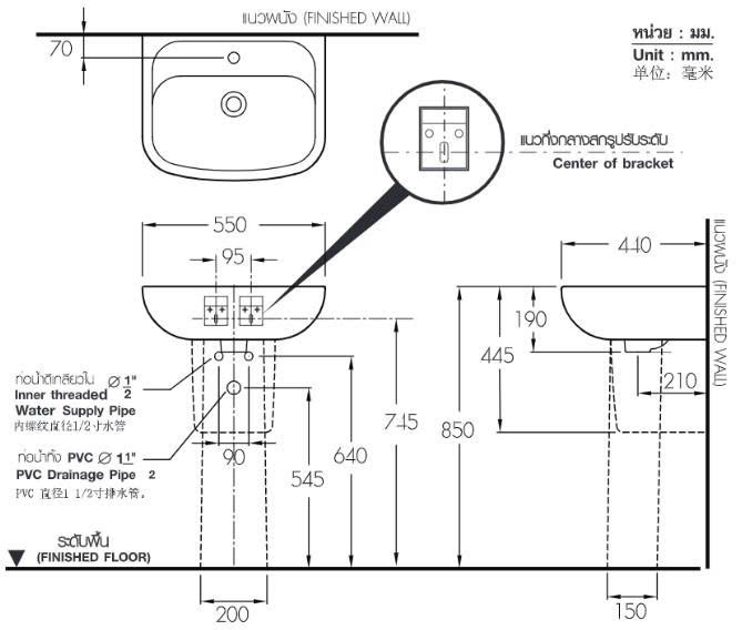 Bản vẽ chậu treo tường chân dài COTTO C0141/C4141