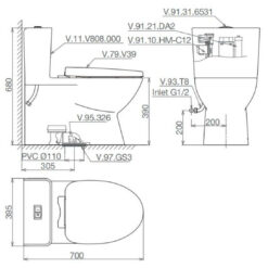 Bàn cầu 1 khối được thiết kiến hiện đại, sang trọng. Phần bệ ngồi có chiều ngang khá rộng đem đến cho người dùng cảm giác thoải mái khi sử dụng. Phần bệ ngồi thiết kế khá lớn nên sản phẩm này nên lắp đặt ở 1 số nhà vệ sinh có điện tích trung bình hoặc rộng.