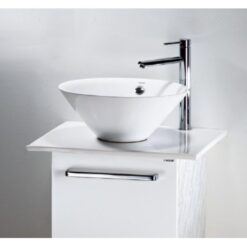 • Chậu rửa mặt tròn đặt bàn: Là chậu có hình dáng tròn sẽ phù hợp khi thiết kế phòng tắm có hình dáng tròn và đi kèm theo vòi nước có thiết kế tròn.