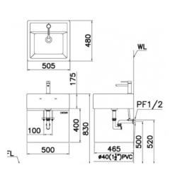 2.Bản vẽ kỹ thuật chậu rửa mặt Caesar L5215