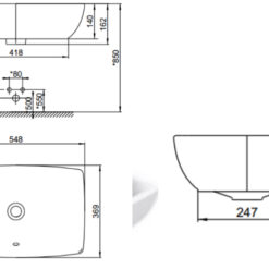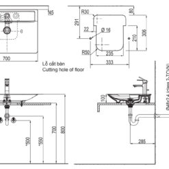 2. Bản vẽ bồn rửa mặt đặt bàn Toto LT523R