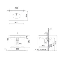 2.Bản vẽ kỹ thuật bồn rửa mặt liền tủ Caesar LF5364