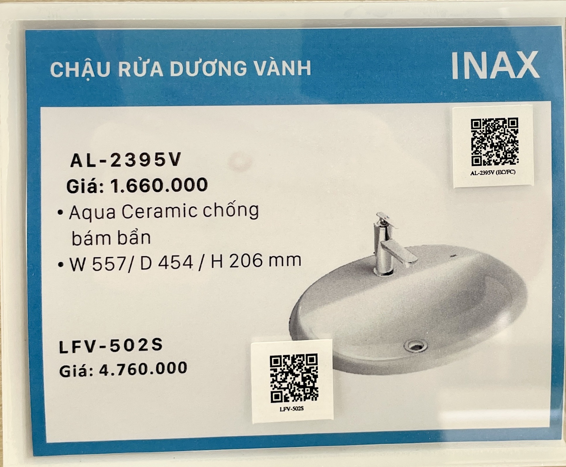 1.Thông tin của lavabo dương bàn Inax AL-2395V