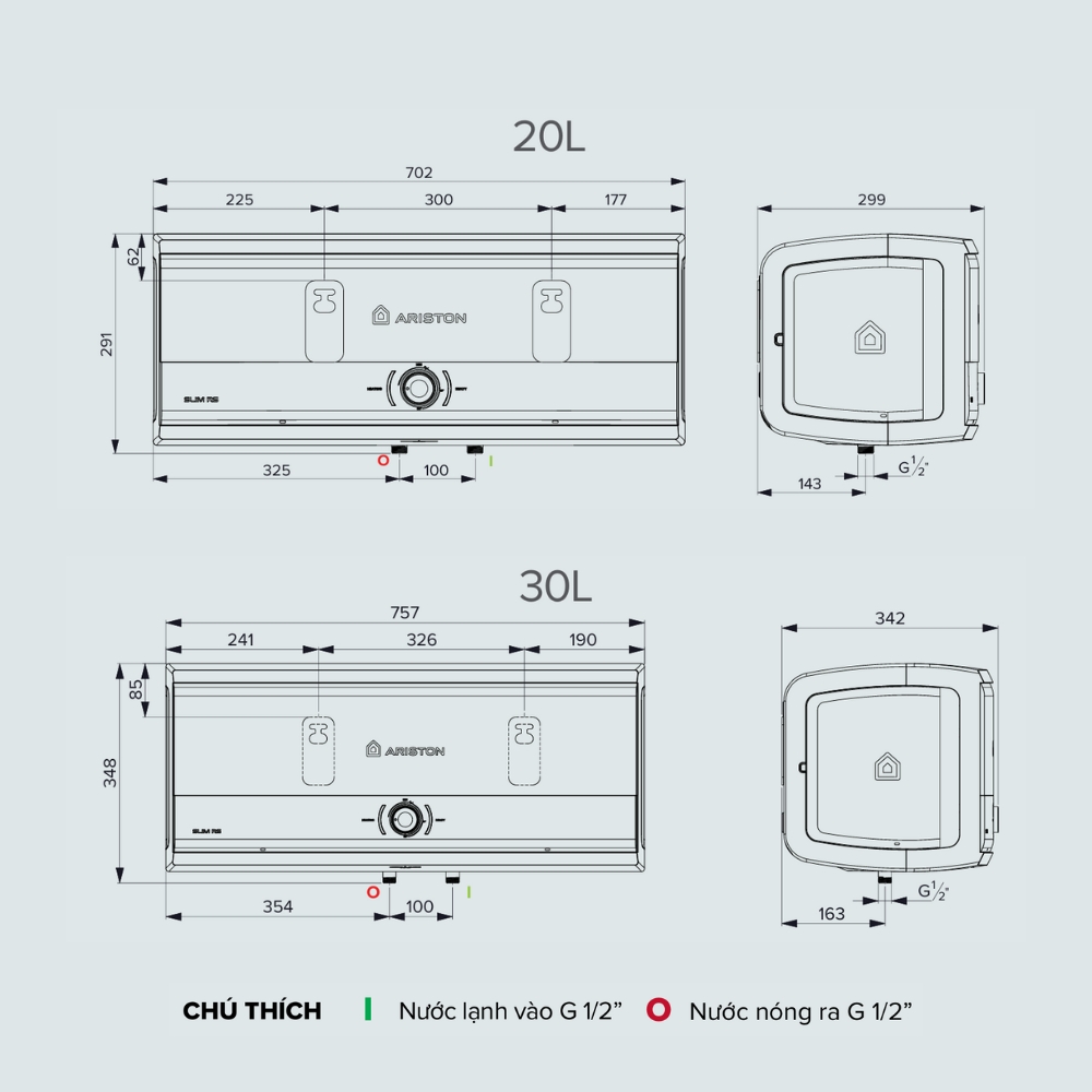 Bản vẽ máy nước nóng gián tiếp SLIM 3 20L RS Ariston