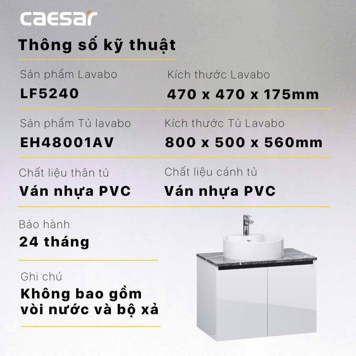 1. Thông Tin Cơ Bản Bộ Tủ Chậu Treo Tường Caesar LF5240/EH48001AV