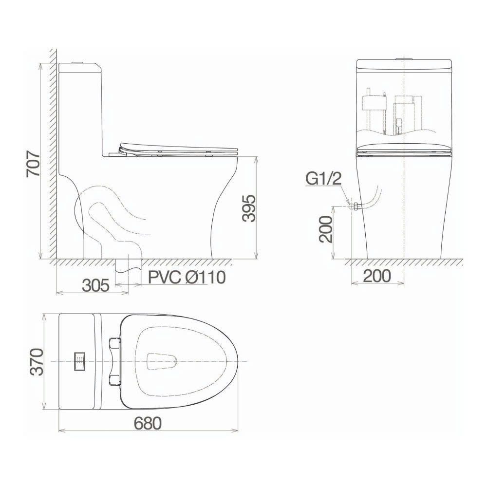 1. Thông số bồn cầu 1 khối Viglacera V45M