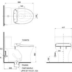 3. Bản vẽ bồn cầu 1 khối kèm vòi xịt Viglacera V803 (nắp êm)