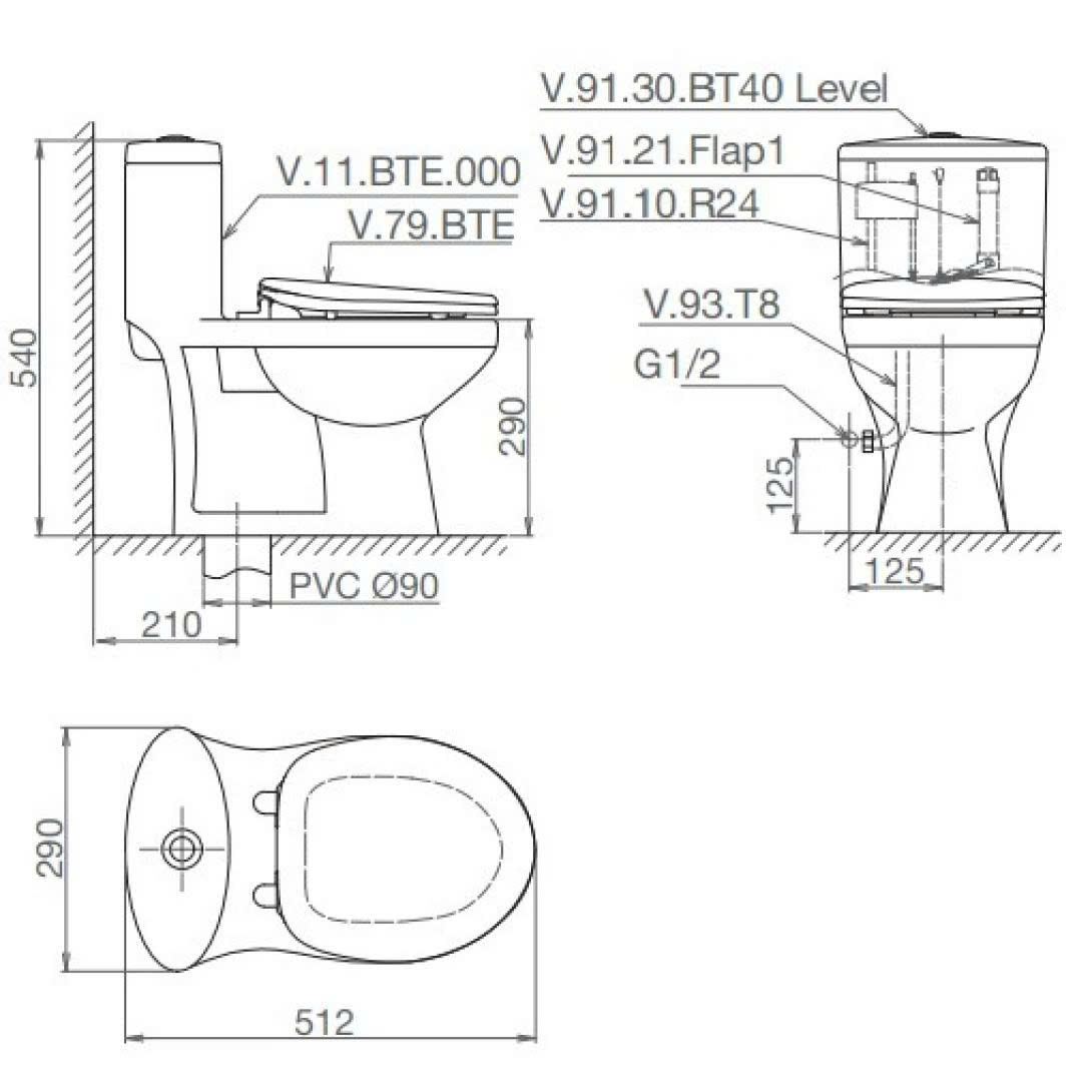 3. Bản vẽ bồn cầu 1 khối Viglacera BTE1 (trẻ em)