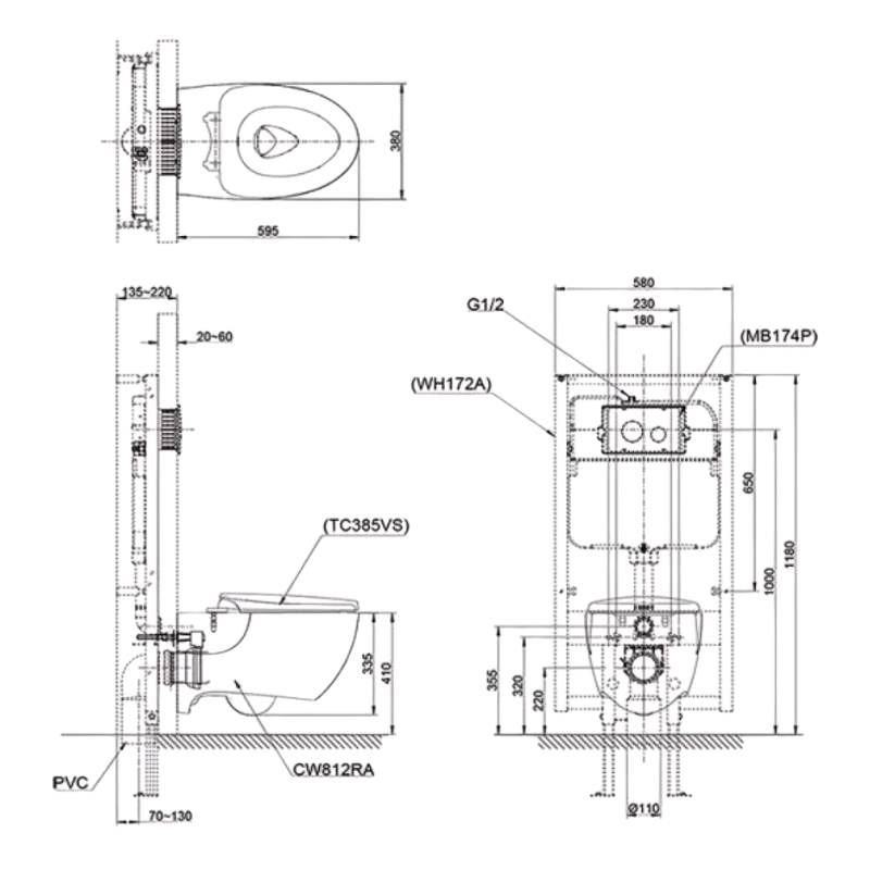 - Két nước và khung âm tường: WH172A – Xuất xứ: Trung Quốc
