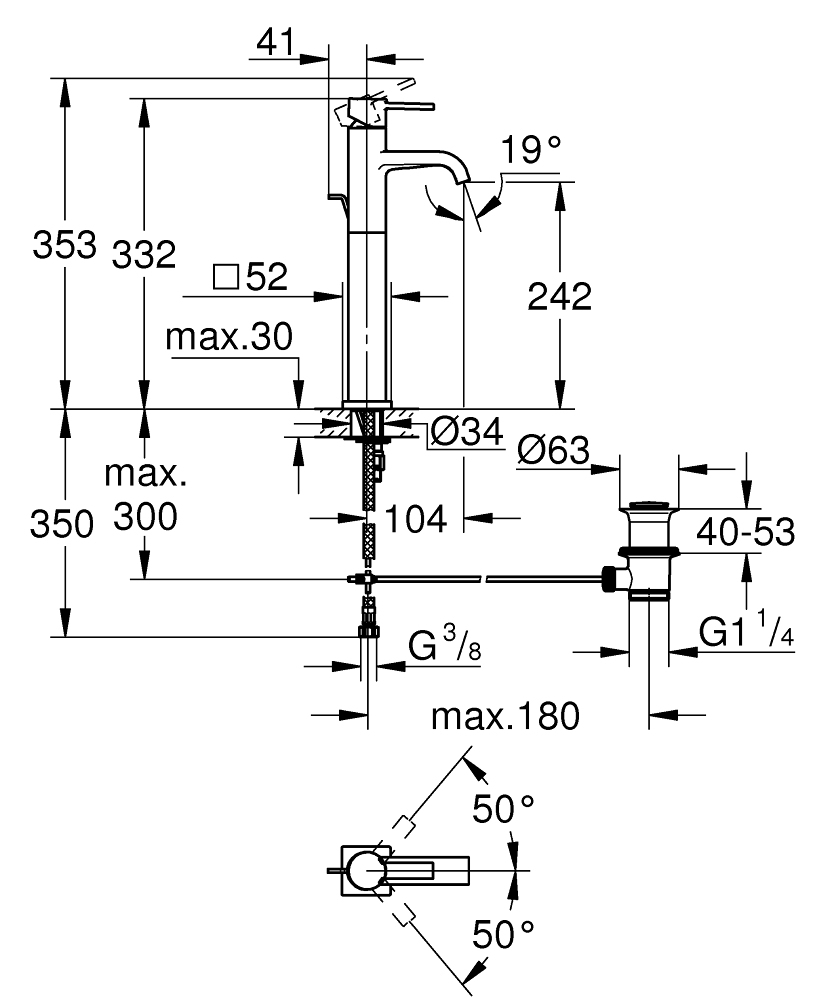 2.Bản vẽ kỹ thuật vòi chậu nóng lạnh Grohe 32760000 (Cổ cao)