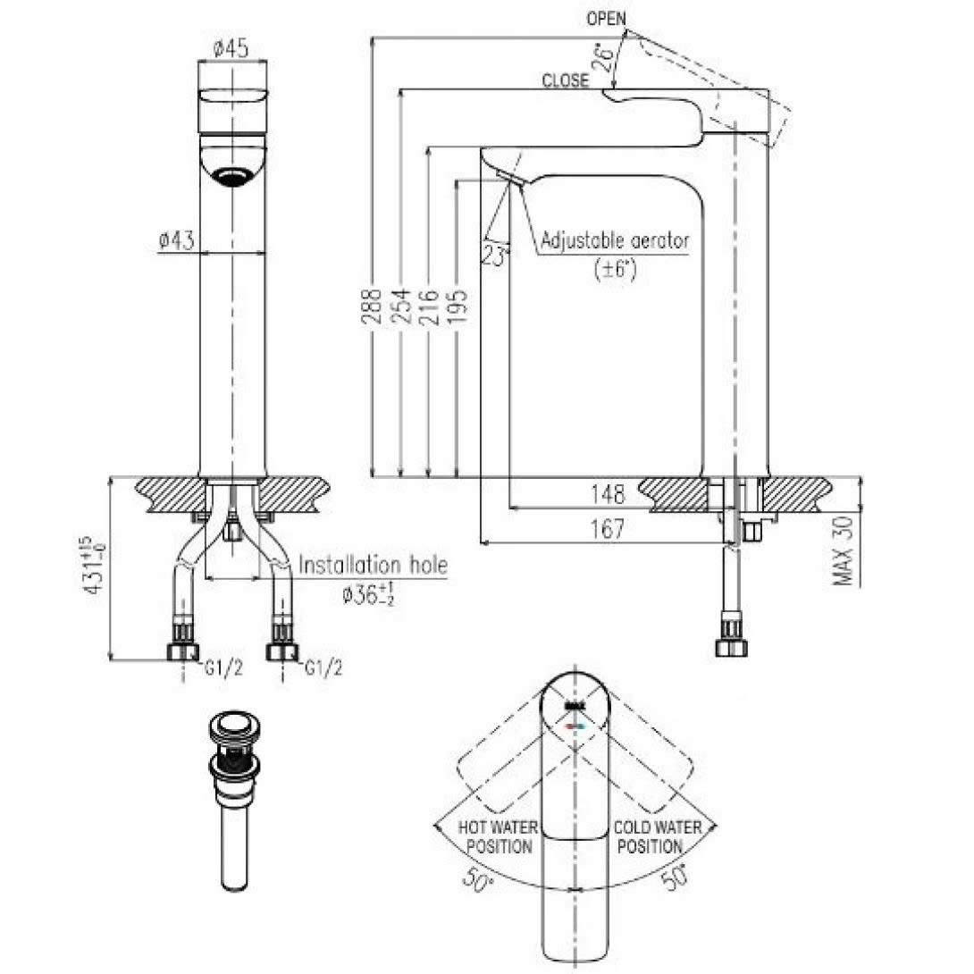 - Áp lực nước : 0.05 MPa ~ 0.75 MPa