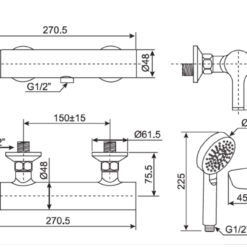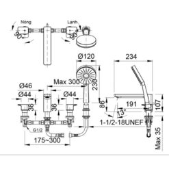 2.Bản vẽ kỹ thuật vòi sen nóng lạnh ToTo 02302V