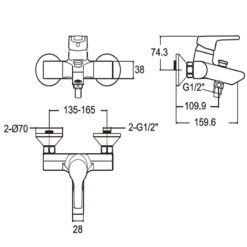 - Áp lực nước: 0.05Mpa – 0.75Mpa