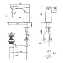 2.Bản vẽ kỹ thuật của vòi chậu nóng lạnh American Standard WF-6502