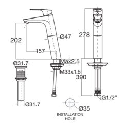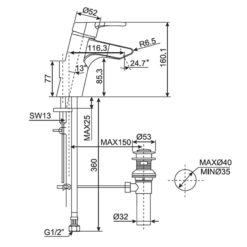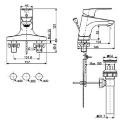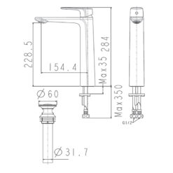 2.Bản vẽ kỹ thuật của vòi nóng lạnh American Standard WF-1701