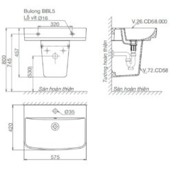 - Bao gồm bộ xả nhấn và dây cấp nước