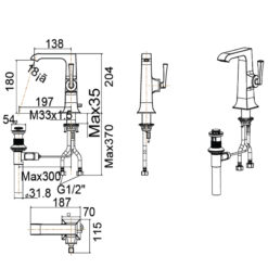 3.Bản vẽ kỹ thuật vòi rửa nóng lạnh ToTo TLS02303V