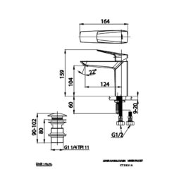 Bản vẽ kích thước vòi chậu nước lạnh COTTO CT1207(HM)