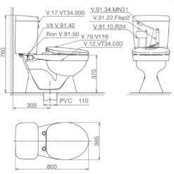Bồn Cầu 2 Khối CAESAR CD1341/TAF710H Nắp Điện Tử